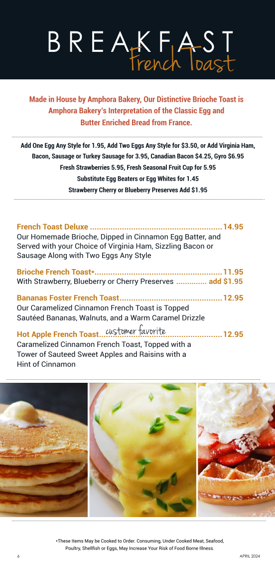 Amphora's Diner Deluxe Menu